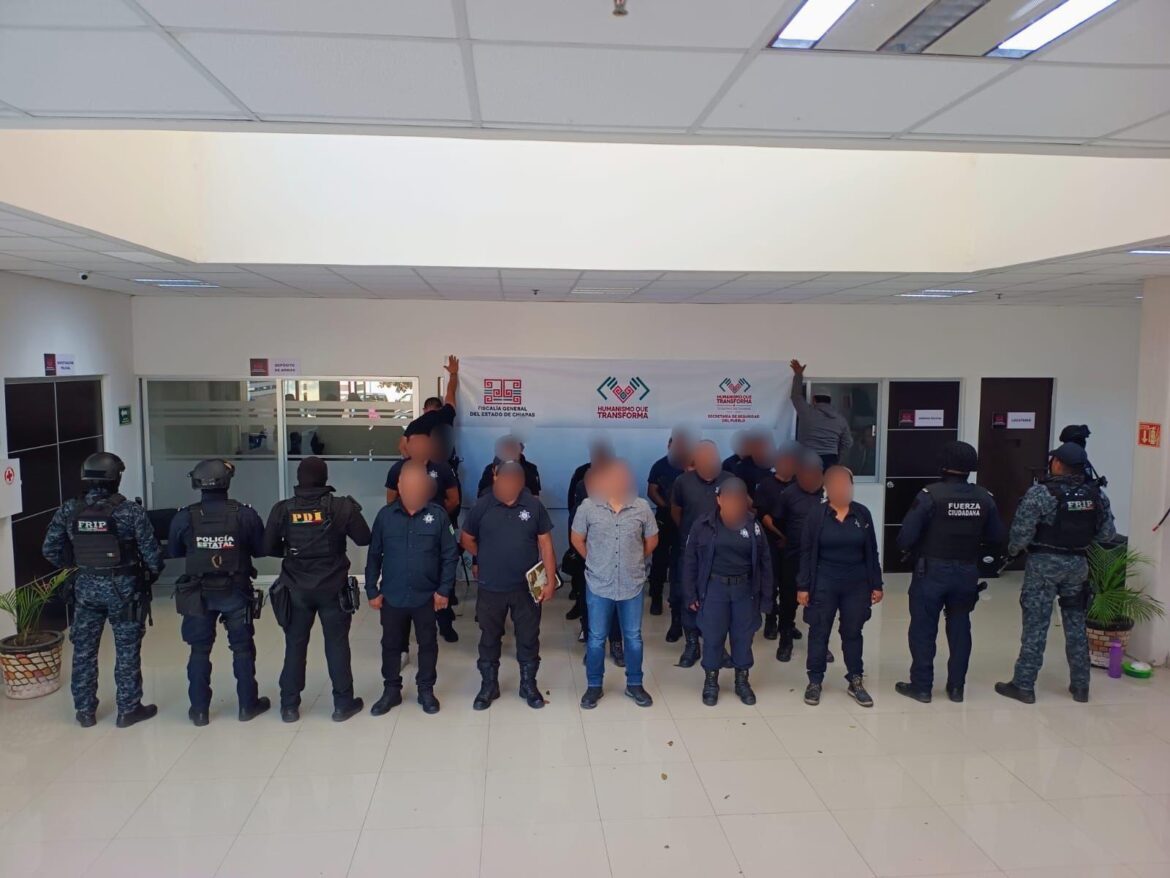 El Fiscal General detalló que en Villa Corzo se hicieron diversos cateos en propiedades de un servidor público municipal; ahí, se detuvo a 26 policías municipales, destacando a quien fungía como director de la Policía Municipal, mismo que cuenta con antecedentes penales al haber sido sentenciado, y que hoy estaba dado de alta con un nombre diverso; no obstante, al correr las fichas y huellas dactilares, arrojó que ya había estado recluido y que no tiene los exámenes correspondientes.