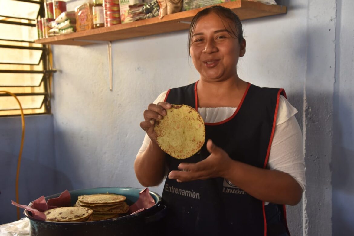 Villahermosa, Tabasco.- Una tortilla gruesa (pim-pimwaj) y un poco de café era lo único que caía en su estómago antes de ir a estudiar a la primaria Graciela Pintado de Madrazo; pero, cuarenta años después, en el mismo centro escolar de la ranchería Aniceto, Centro, Eneida de la Cruz hace las tortillas gruesas, esta vez acompañadas de lentejas cocidas con zanahoria, chayote, arroz con chícharo y un huevo cocido.