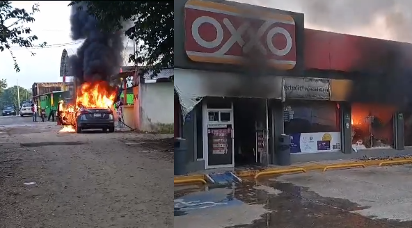 En el corredor Villahermosa-Playas del Rosario, dos Oxxos fueron incendiados; el primero en Claustros y el segundo frente a Parrilla II. También se intentó quemar una gasolinera. Al menos 8 negociaciones sufrieron ataques los sicarios piromanos.
